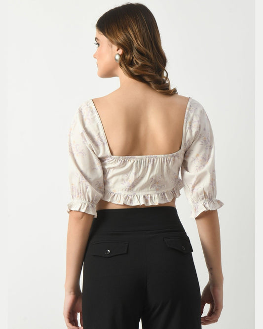 Women's Ditsy Print Sweetheart Neck Crop Top Blouse