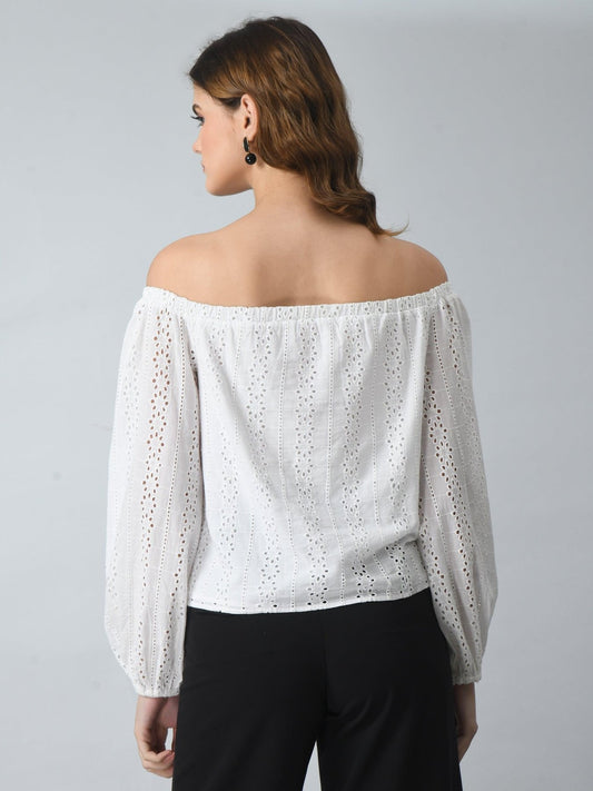 Women's Schiffly 100% Cotton Off Shoulder Crop Top