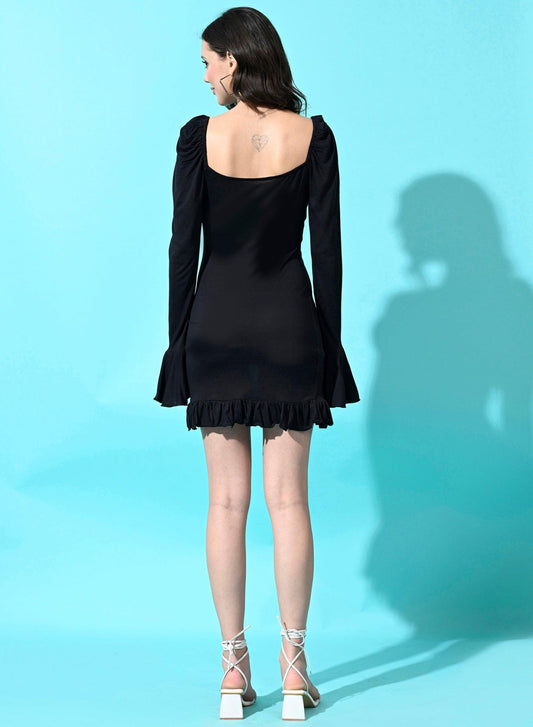 Women's Chiffon Frill Hem Long Sleeve Bodycon Mini Dress - Purple