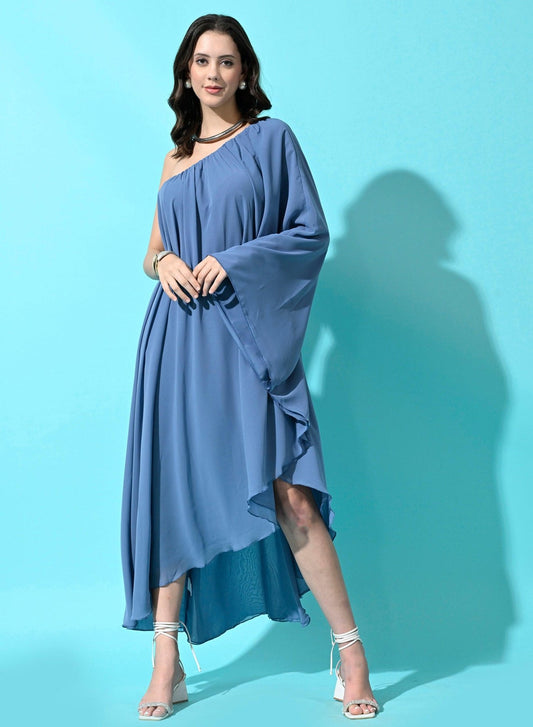 One Piece Georgette Flowy Midi Dress for Women - Blue