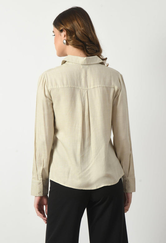 Women Solid Regular Fit Formal Office Wear Satin Shirt - Off White