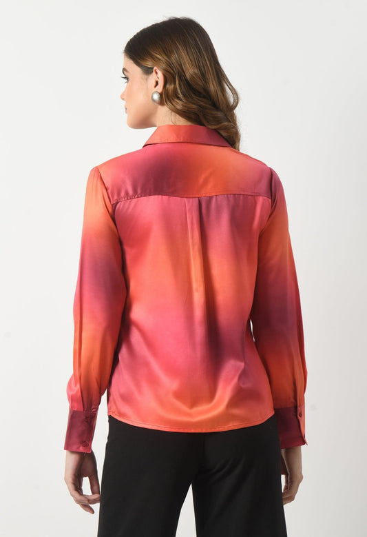 Women Satin Digital Ombre Print Full Sleeve Formal Shirt