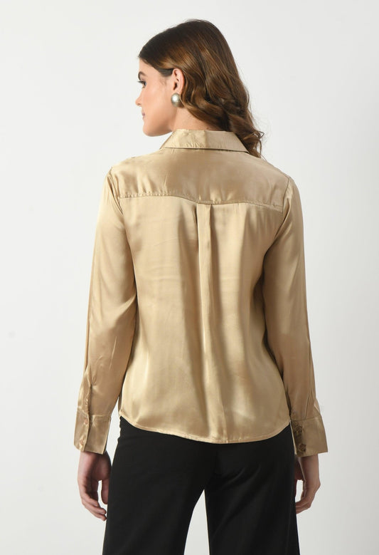 Women Solid Regular Fit Formal Satin Shirt - Golden