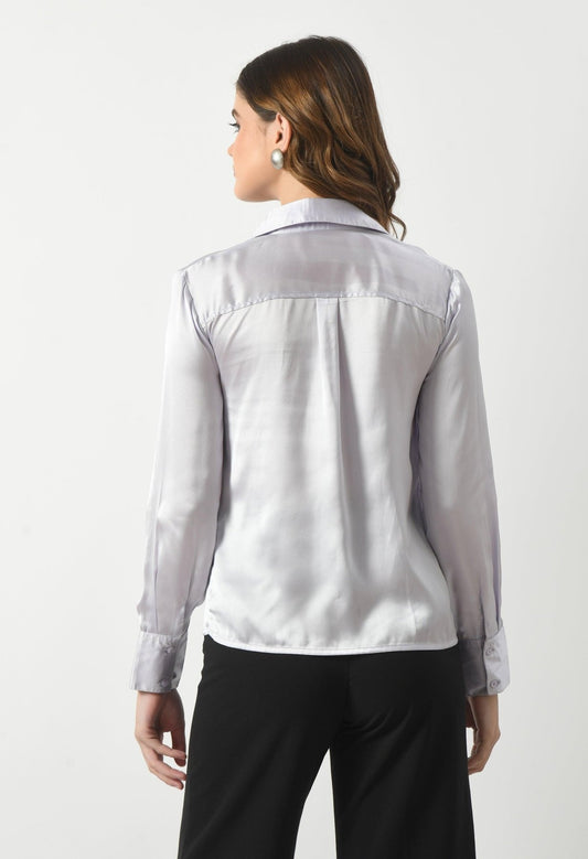 Women Solid Satin Formal Ladies Shirt for Women - Light Purple