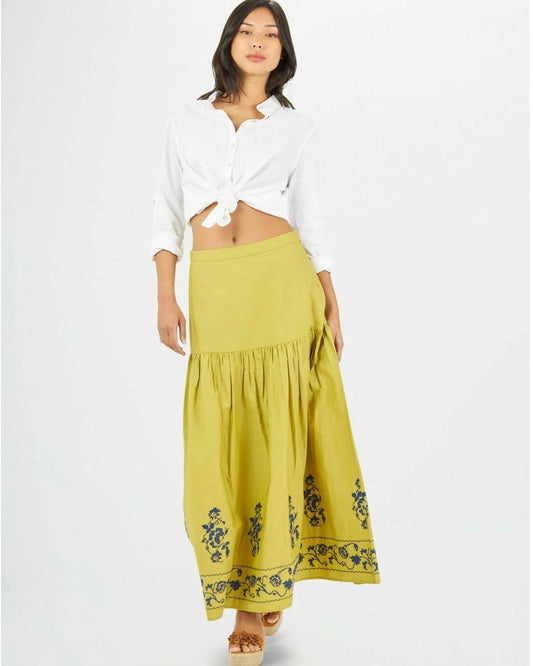 100% Cotton Embroidery Maxi/Long Skirts for Women